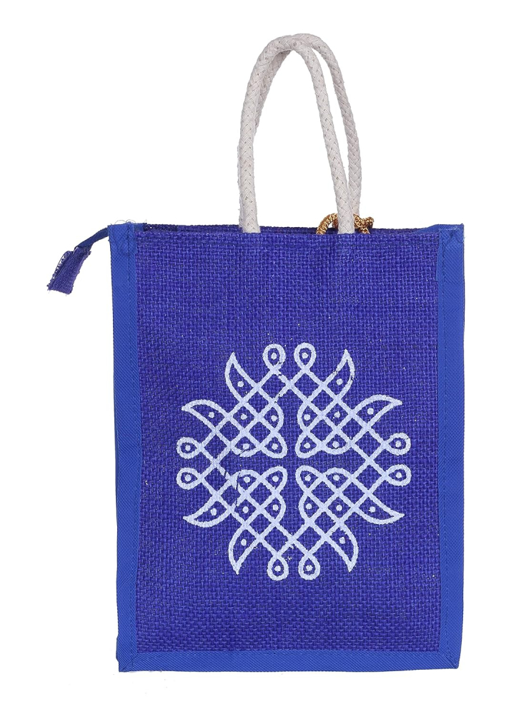 The Laya Jute Bag captures the graceful rhythm of traditional Kolam patterns in a sustainable, stylish form. Made from eco-friendly jute, it offers durability with a touch of cultural elegance—ideal for daily use, gifting, or special occasions. Lightweight, spacious, and naturally chic. Customisable to the customer's requirement. With and without zip.