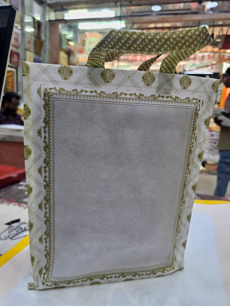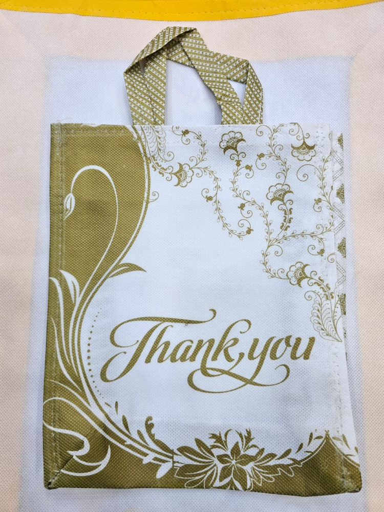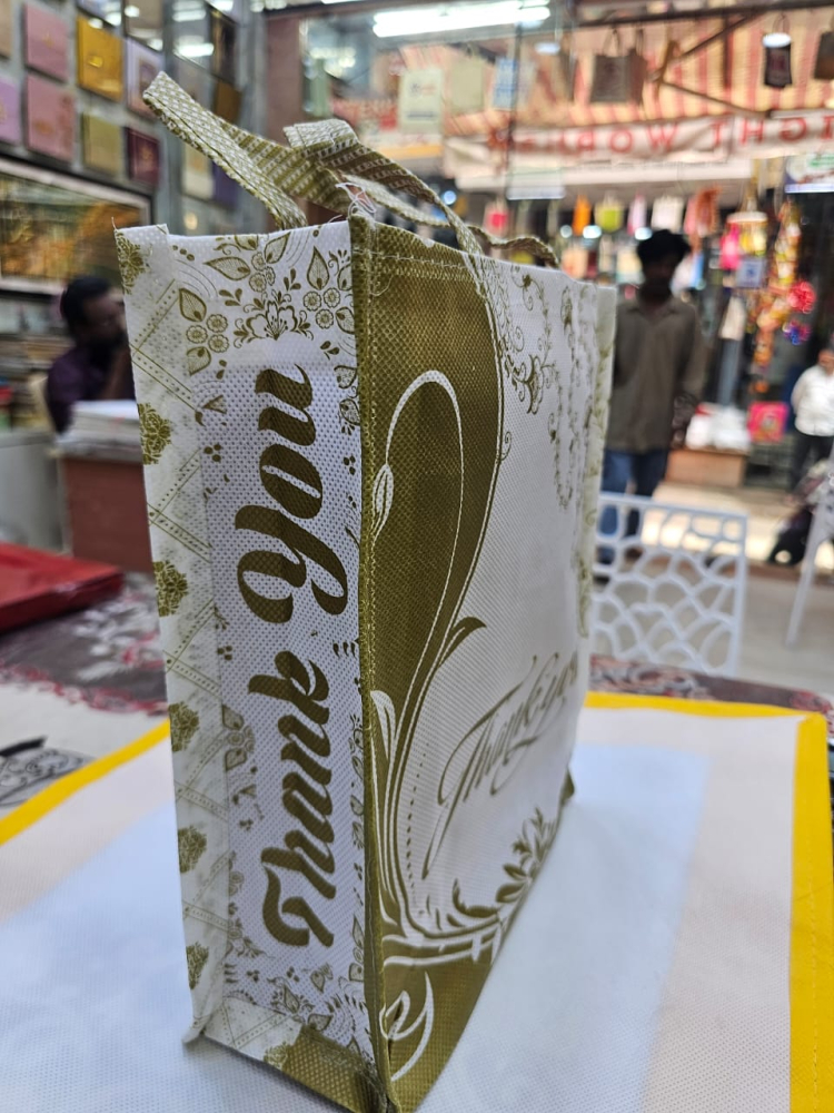 Non woven S/Border with side gazzet Gold Bag with Thank you, Vinayagar, Pillaiyar and Perumal. ready madeprinting charge extra per bag 70 paise gold print per bag 1 rs