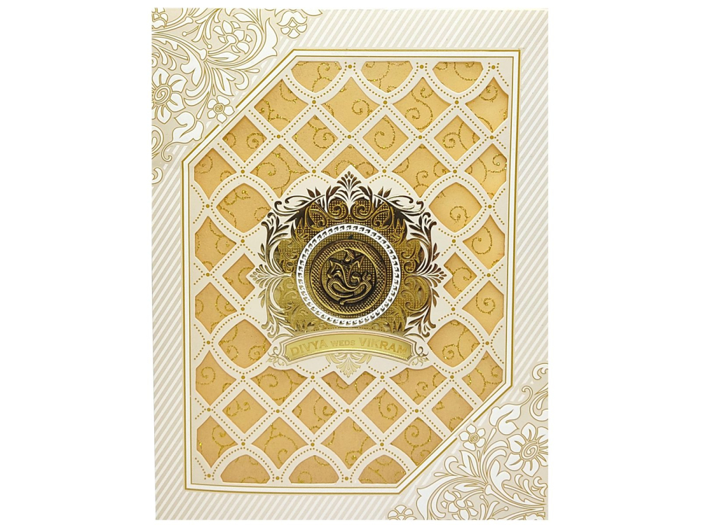 Have you had a look through windows from inside a palace? We have designed that window into our wedding invitations. This invitation card reflects the beauty of a royal white palace window pane. Elegant design at the top left and bottom right corner and a big window pane in the centre assures you a great palace vibe. To enhance its look as a wedding card, we have a Ganesha right in the centre of the window. Through the window, you can see shiny details which is a woolly paper used specially for such outstanding designs. now!1Additional Information